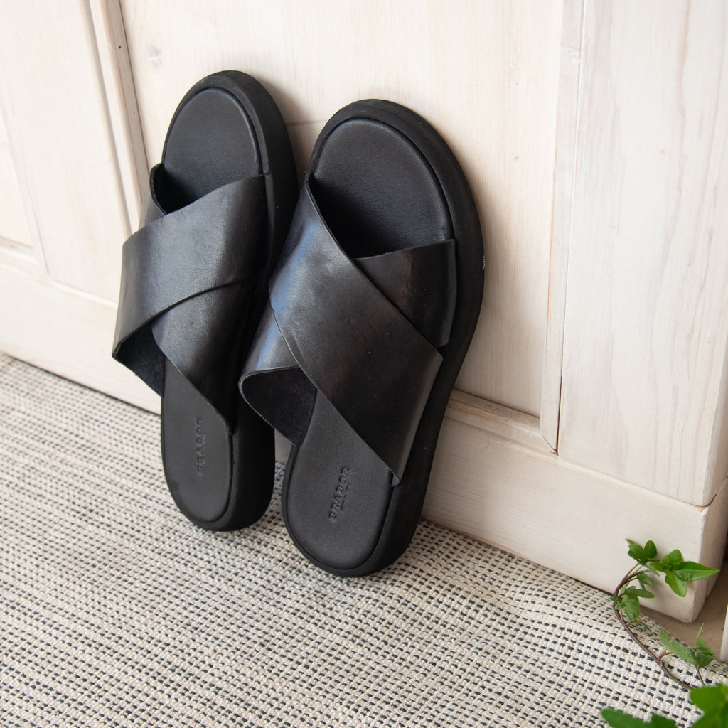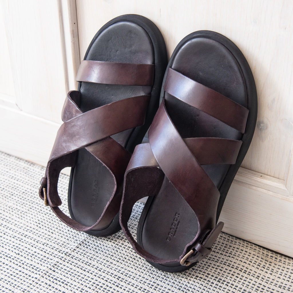 The special T/CAPO Brador treatment, with dyes and waxes applied by hand, gives the leather a vintage appearance with rich, unique shades, enhancing the features of vegetable-tanned, unfinished leather and making each sandal an unrepeatable piece.